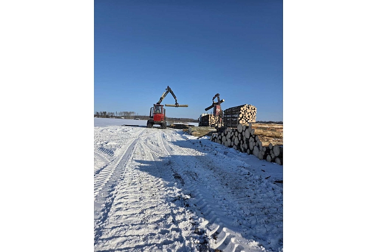 Kokmateriālu pievešana un kraušana ar tehniku pēc izstrādes