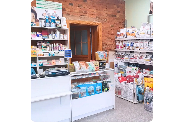Veterinārā aptieka ar dzīvnieku barību un kopšanas līdzekļiem